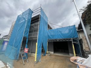 久しぶりのM様邸、足場でまだ隠れていますがよく見ると、