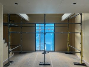 ここにも足場が!家の中とは思えないくらい立派にそびえたってます。