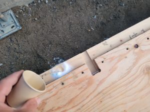 記念すべき一本目の柱建てはスタッフが担当!(ハンマーが相当重かったので3人で笑)