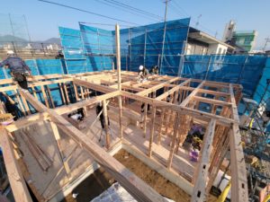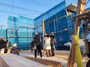 先日、事務所隣のモデルハウスが上棟を迎えました!