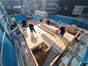 私も自らが設計打合せに携わった建物ということもあり、工事が気になっては事務所を出て眺めていました。