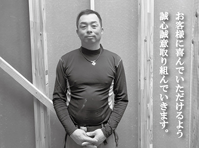 大工一筋17年。お客様に安心して住んでいただける家を、真心込めて建てさせていただきます。