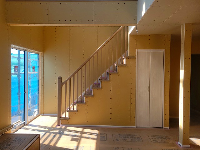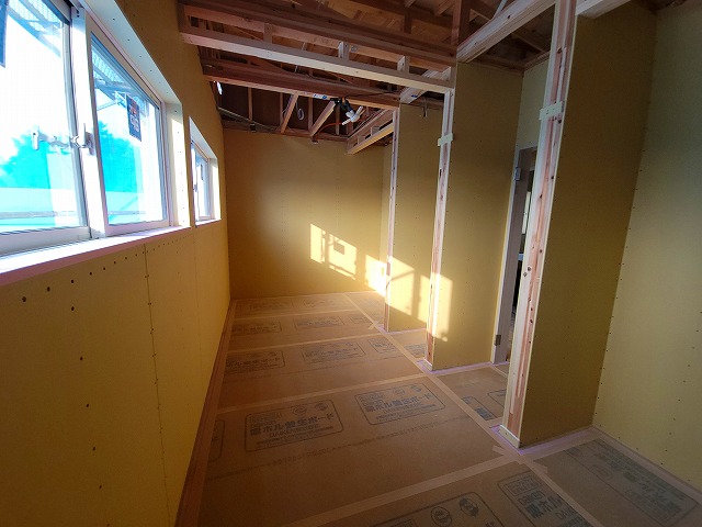 室内では、プラスターボード貼りの工程が進んでいます。