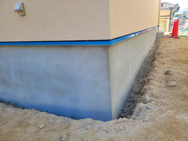 基礎巾木部分のモルタル仕上げ塗りを行いました。表面の仕上がりや外壁とのバランスを確認しながら、丁寧に施工しています。基礎を保護する役割とともに、建物全体の外観を引き締める大切な仕上げ工程です。細部まで整い、住まいの完成度がさらに高まってきました😊🏡