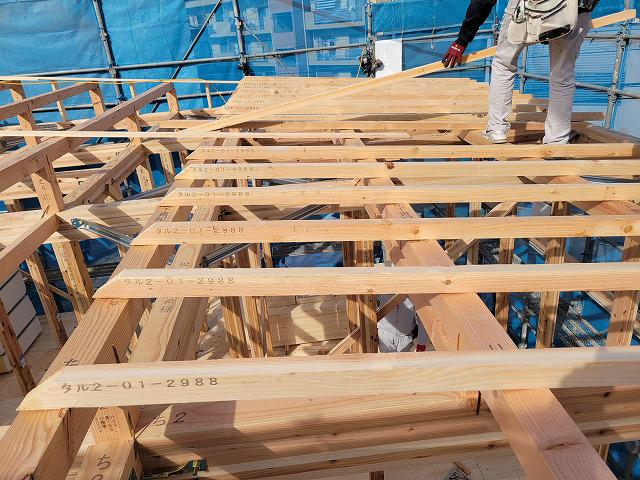 屋根工事が順調に進んでいます。雨や風、日差しから住まいを守る重要な部分のため、下地から仕上げまで確認しながら丁寧に施工を行っています。見えにくい箇所や細かな納まりについても、職人さんと連携し慎重に進めています。