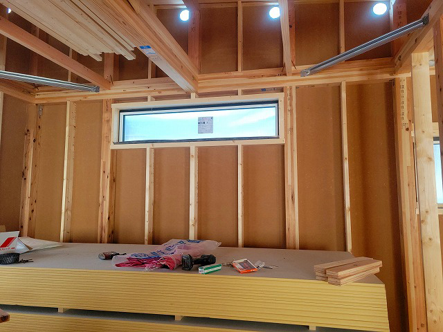 サッシの取付工事が進んでいます。窓が設置されることで、室内に自然光が入り、空間の広がりやお部屋のイメージがぐっと分かりやすくなってきました。気密性・断熱性に関わる大切な部分のため、取付位置や納まりを確認しながら丁寧に施工しています。