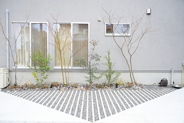 外構には木の素材を取り入れ、住まい全体をぬくもりのある印象に仕上げました。