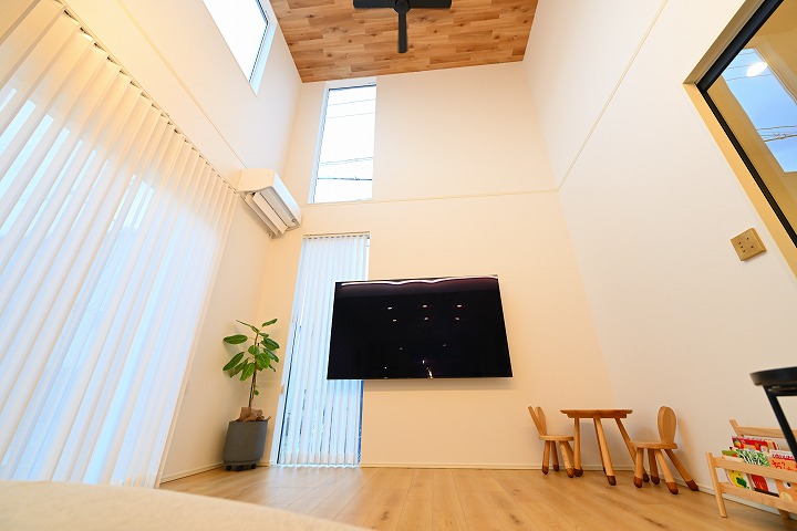 家づくりでこだわったのは、広々としたリビング空間。大きな吹き抜けを設けたことで、開放感あふれる住まいが実現しました。