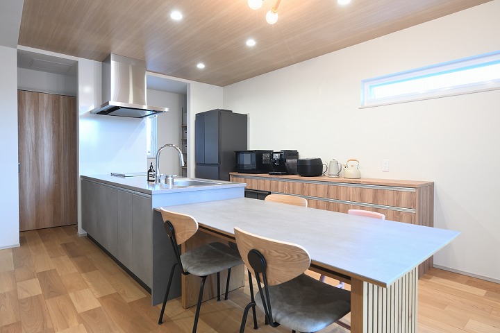 また、内装は木目とグレーを基調に、シンプルでありながらも木の温かみを感じられる、やさしい印象の空間に。デザインと居心地の良さ、どちらも大切にした住まいとなっています。