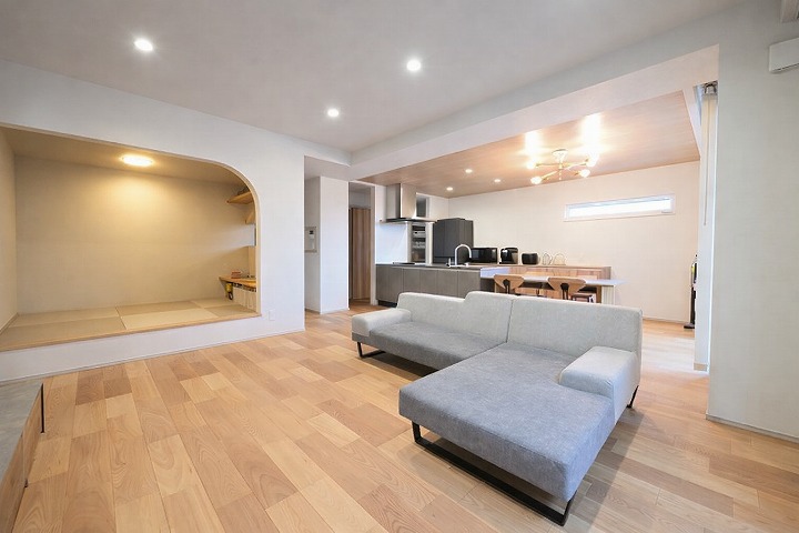 実際にLDKは22帖と、ゆとりある空間となっています。以前のお住まいでもご家族がリビングに集まる時間が多かったことから、共有スペースをより広く快適にすることで、これまで以上に家族のつながりを大切にしたいという想いがありました。