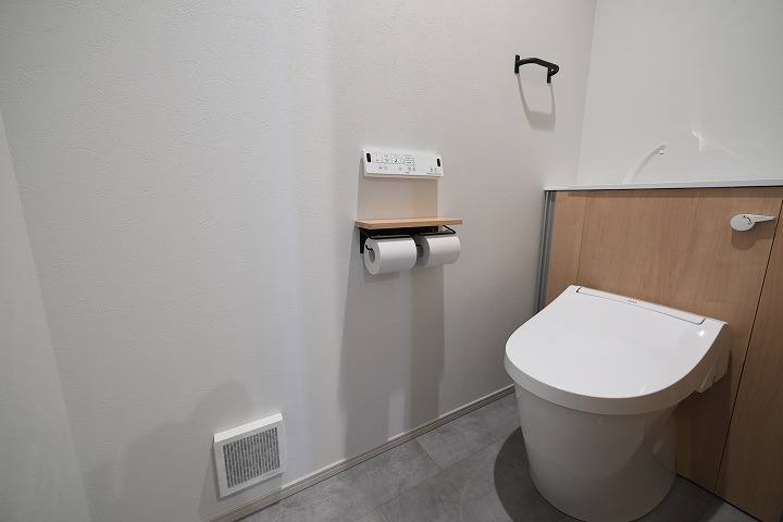 また、内装は木目とグレーを基調に、シンプルでありながらも木の温かみを感じられる、やさしい印象の空間に。デザインと居心地の良さ、どちらも大切にした住まいとなっています。